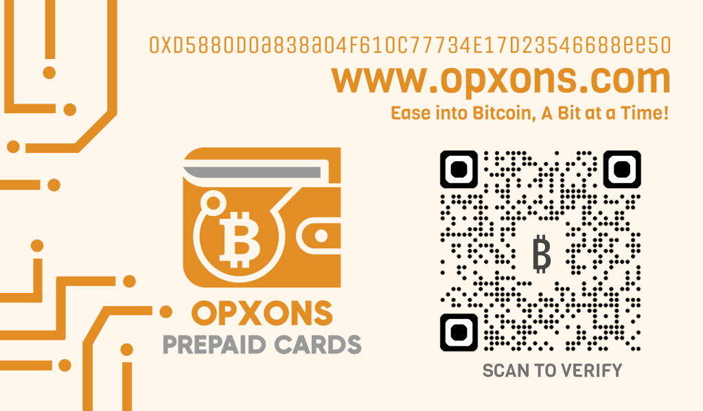 Flexibility: The opXOns prepaid card enables you to select a fixed dollar value and redeem it in Bitcoin when the time suits you, thereby mitigating the risk associated with Bitcoin’s price volatility.